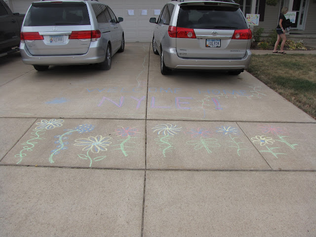 The boys decorated the driveway and made welcome home signs with the help of Nana and Nini.